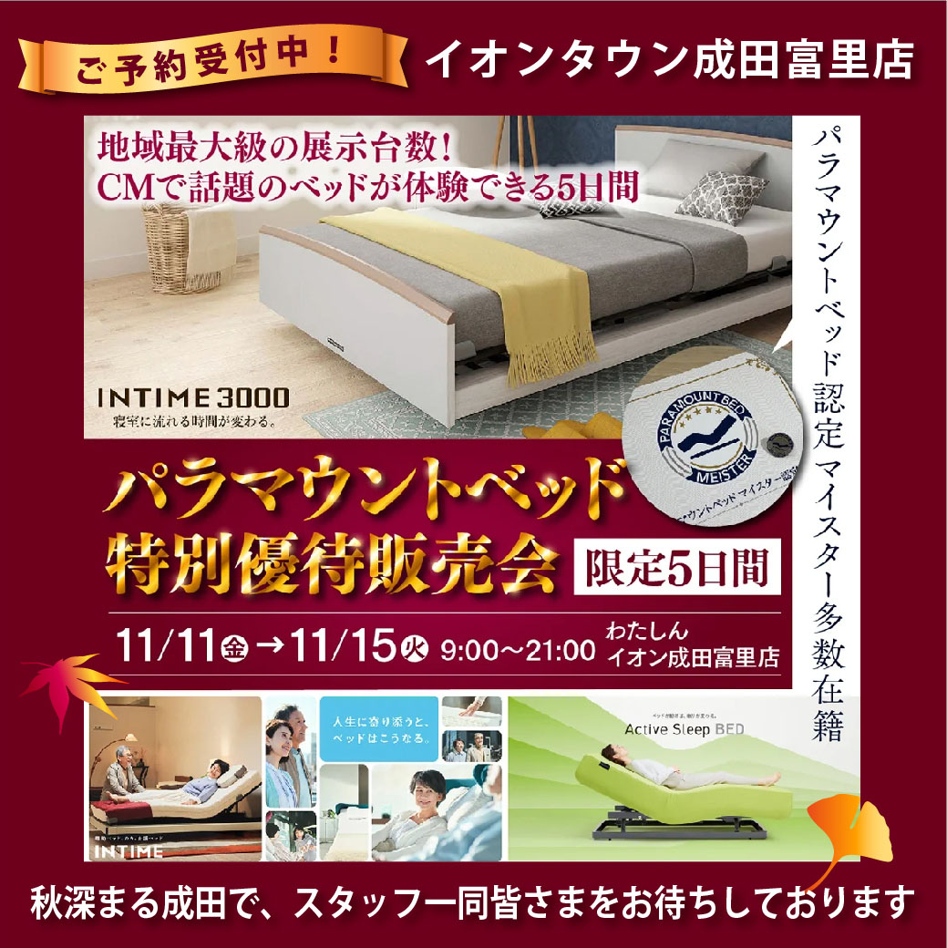 パラマウントベッド特別優待販売会のお知らせ-イオンタウン成田富里店-