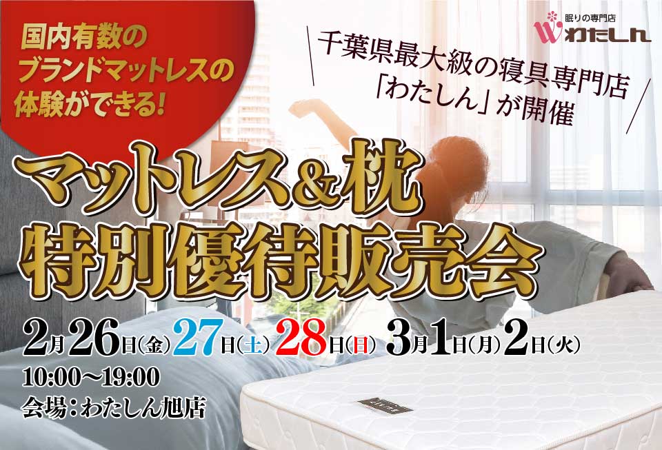 マットレス&枕 特別優待販売会2/26-3/2まで開催