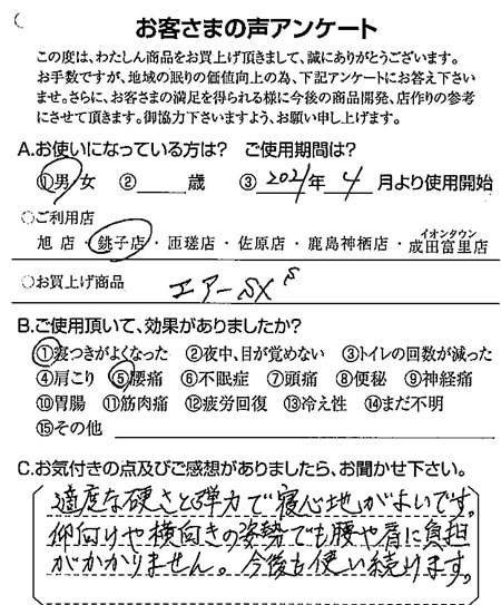 千葉県銚子市在住の銚子店をご利用のお客さまより