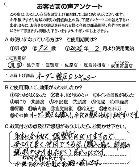 千葉県旭市在住の旭店をご利用のお客さまより