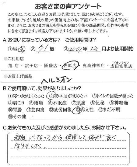 病気になってから使用して…(ヘルシオン) 2025.10.30 病気になってから使用して体が良くなりました。千葉県成田市在住の佐原店をご利用のお客さまより 通年使える万能な一枚だと感じました(生まゆ真綿ふとん)前の記事 真夏の暑い時に、ムートンは暑さを感じることなく…(ムートンシーツ38ミリ)次の記事
