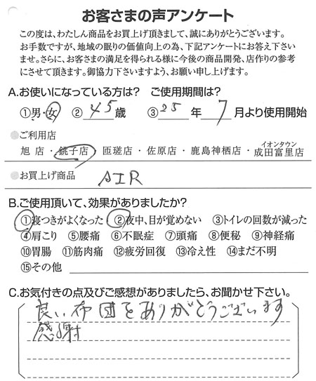 良い布団をありがとうございます。感謝。(AiR) 2025.10.30 良い布団をありがとうございます。感謝。千葉県銚子市在住の銚子店をご利用のお客さまより 真夏の暑い時に、ムートンは暑さを感じることなく…(ムートンシーツ38ミリ)前の記事 このムートンで3枚目ですが離せません(ムートン)次の記事